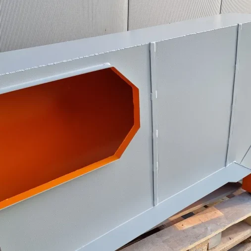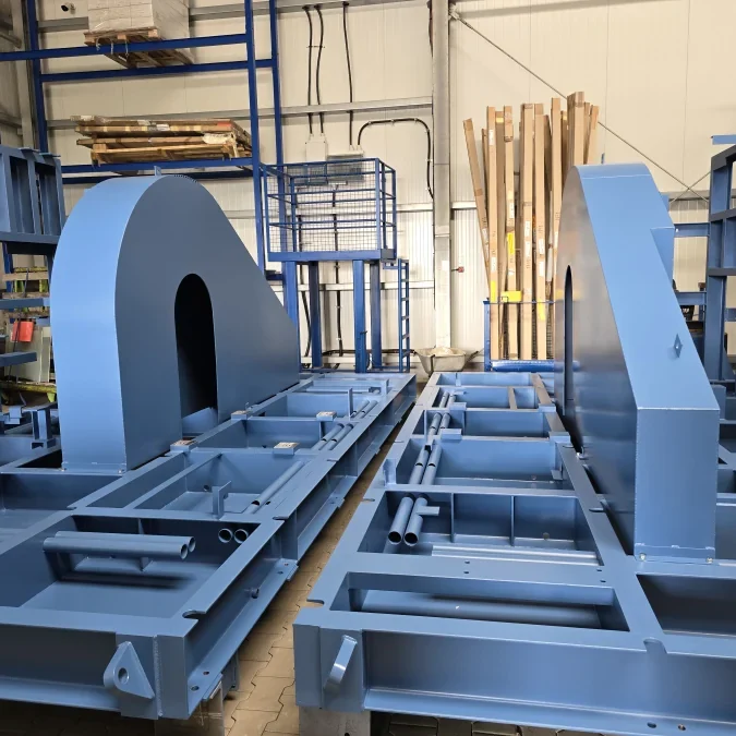 Zur Zerkleinerung von Abfällen stellten wir verschiedene Brechergehäuse her. Hier wird der Abfall mittels Hydraulik und einer sehr stabilen Stahlkonstruktion gebrochen und kann somit besser im weiteren Prozess verfeuert werden.
