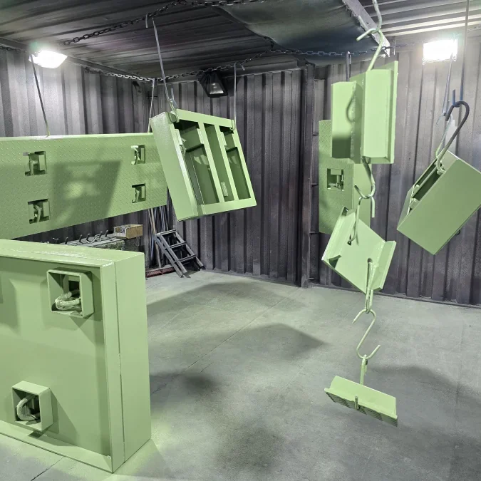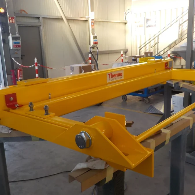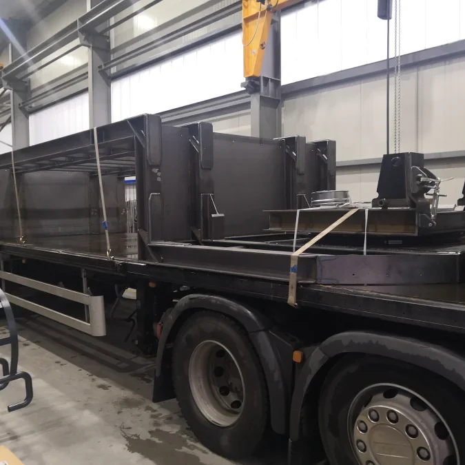Stückgewichte (Fertigteil) von standardmäßig gut 12 Tonnen zu fertigen ist für uns kein Problem. Diverse Hallenkräne ermöglichen uns auch mehrere Schweißkonstruktionen gleichzeitig zu bewegen. Der Wareneingang verfügt über einen separaten Kran, sodass eine Beladung und Endladung schnell und unkompliziert erfolgen kann. Das Grundstück ist so konzipiert, dass auch schwere und unhandliche Bauteile optimal verladen werden können. Die durchdachte Lage der Halle an der van-Houten-Straße ermöglicht eine sehr gute Anbindung an die Autobahn A3 in Emmerich, wie auch an die A57 in Goch in Richtung Ruhrgebiet.